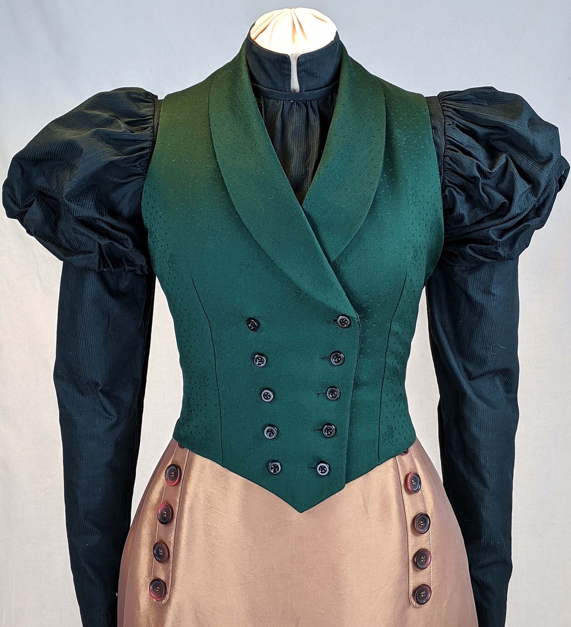Both vests are meant to be worn over a corset to reach the typical shape of the 1890´s with a high bust point and a narrow waist, fitted with darts at the front and back.