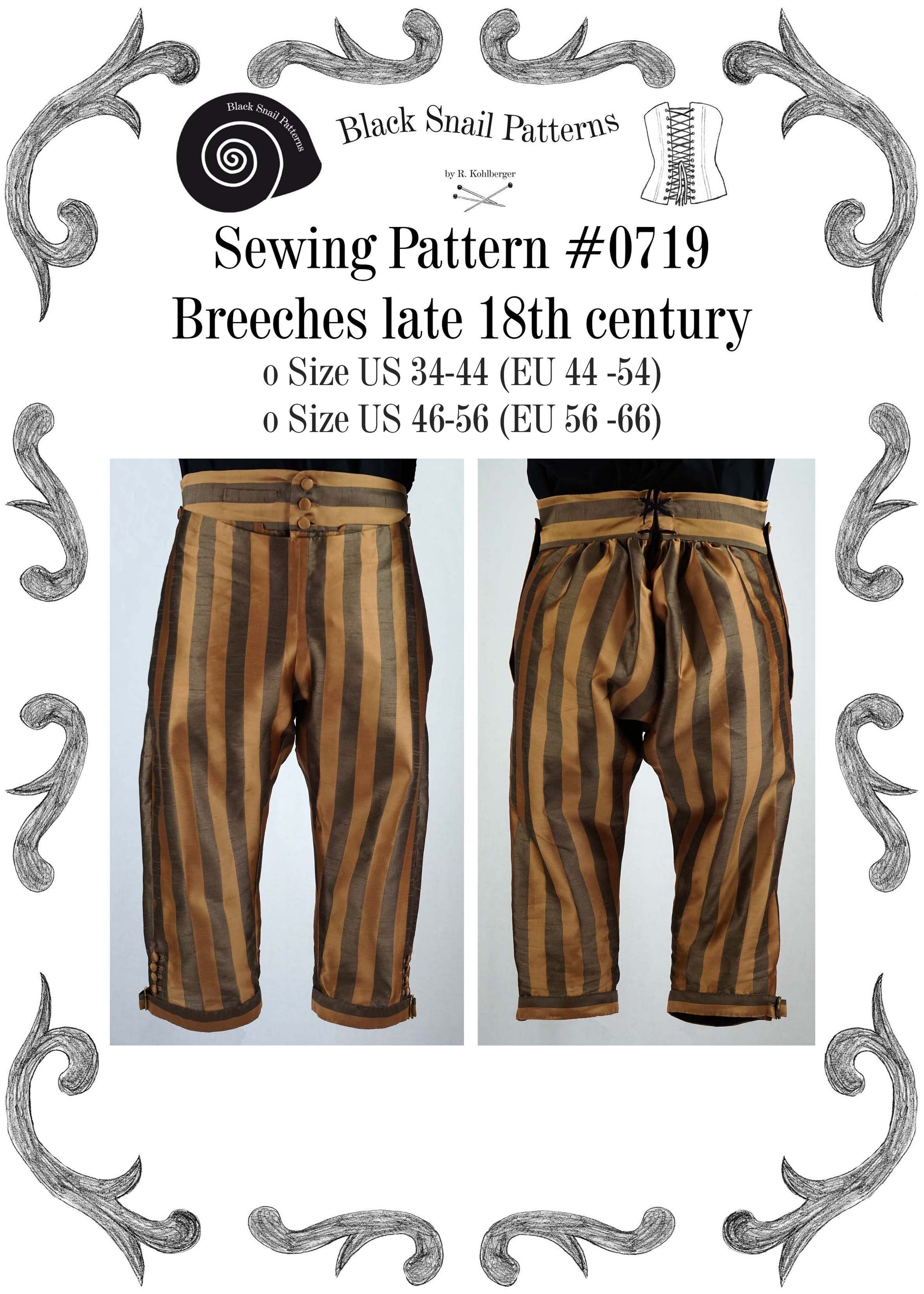 #0719 Georgian Mens Breeches, late 18th century Sewing Pattern Size US 34-56 (EU 44-66) PDF Download
